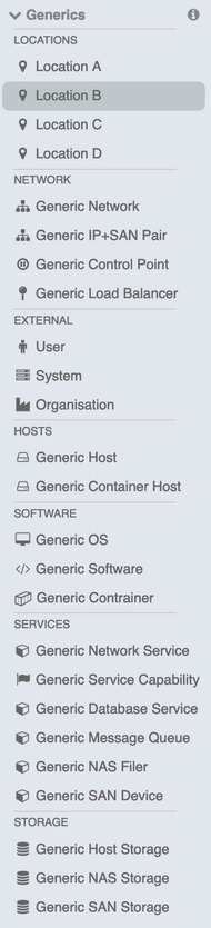 Generics span the range of components and will change over time as the product evolves. An example set is shown tot he right.