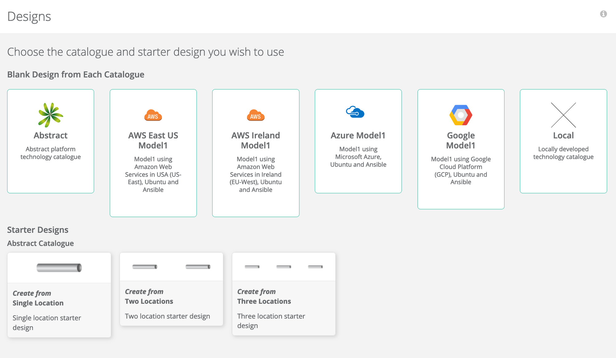 The second part of the choice page contain a list of βstarterβ designs, which are designs that have created with for the purpose of being used as a base. Selecting one of these creates a new design, loads the base, prepared design and installs the catalogue on which it was based. You can continue populating the architecture and save in the normal way.