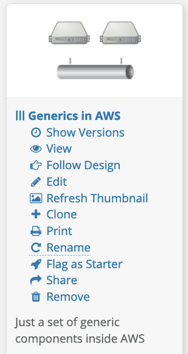 When you have a design that you believe to be useful, you should save it with a descriptive name. In the directory of choices, open the menu and select the Flag as Starter. This option is a toggle, so if you want to withdraw a design, click on it again (although it will appear as Unflag as a Starter).
