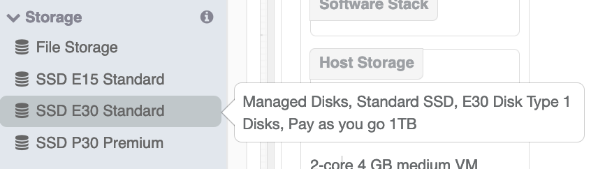 Storage can be any non-volatile technology, such as NVMe or spinning disk. Within that are different capacities, capabilities and performance levels.