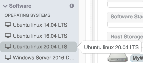 Hosts have their own category in the catalogue selection panel; below is an example. Hovering over the host label gives an expanded description of the device in question.