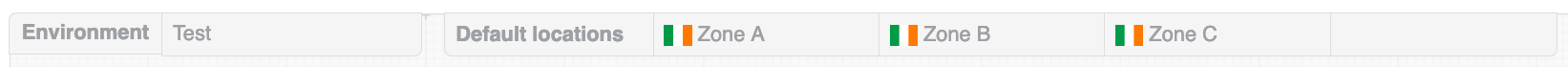 The image below shows a test environment label together with three locations in Ireland - zones A to C, denoting the availability zones in an Irish data centre.
