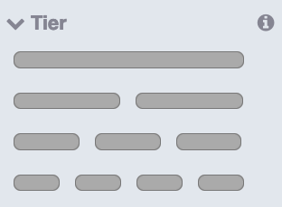 Different locations can be expressed in different tiers to give the most flexibility when a design needs to show a great diversity of venues. There is a limit of four locations across a page in a tier.