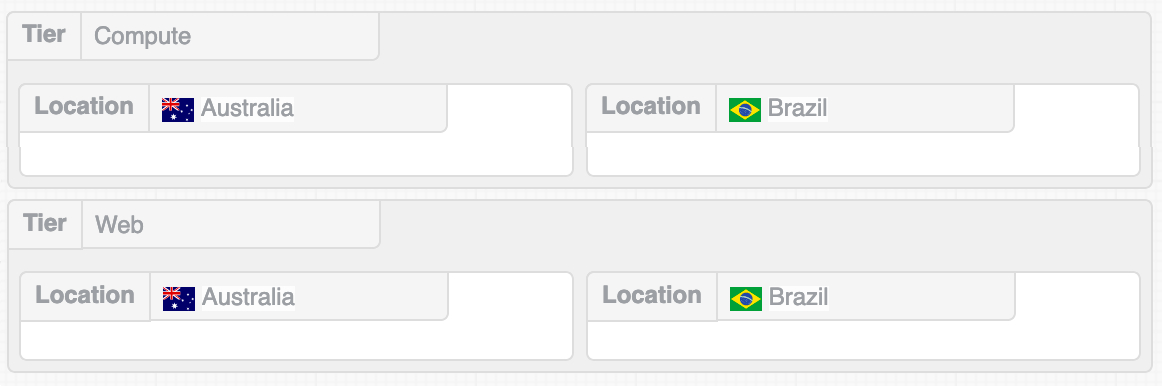 To avoid adding locations on each tier manually, use the defaults as shown above. Once locations are set, each tier will be allocated an initial location when it is dragged out on to the canvas. To remove location, hover over the location and click the red βXβ. Then you can replace it with a suitable new location from the catalogue.