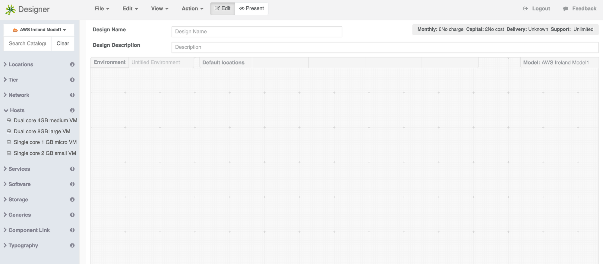 When a new, empty design is started, the author will receive a page similar to the one below.